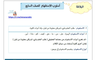 أسلوب الاستفهام للغة العربية الصف السابع الفصل الثاني
