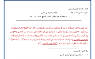 أسئلة التقويم للوحدة الأولى (آيات من سورة هود) مجمعة لغة عربية الصف الثامن الفصل الثاني أ أحمد جلال