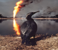 الصورة التالية توضح آثر من آثار حرائق الآبار النفطية هو: