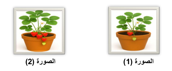 التقط محمد صورة لنبتة الفراولة، ثم التقط صورة أخرى بعد مرور أربع أسابيع ،انظر إلى صور محمد. ماذا حدث لنبتة الفراولة خلال الأسابيع الأربعة التي تفصل بين الصورتين؟
