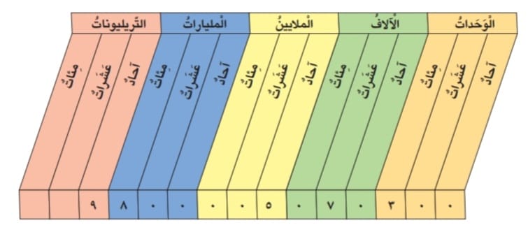 القيمة المكانية للرقم 6 هي: 6900405847381