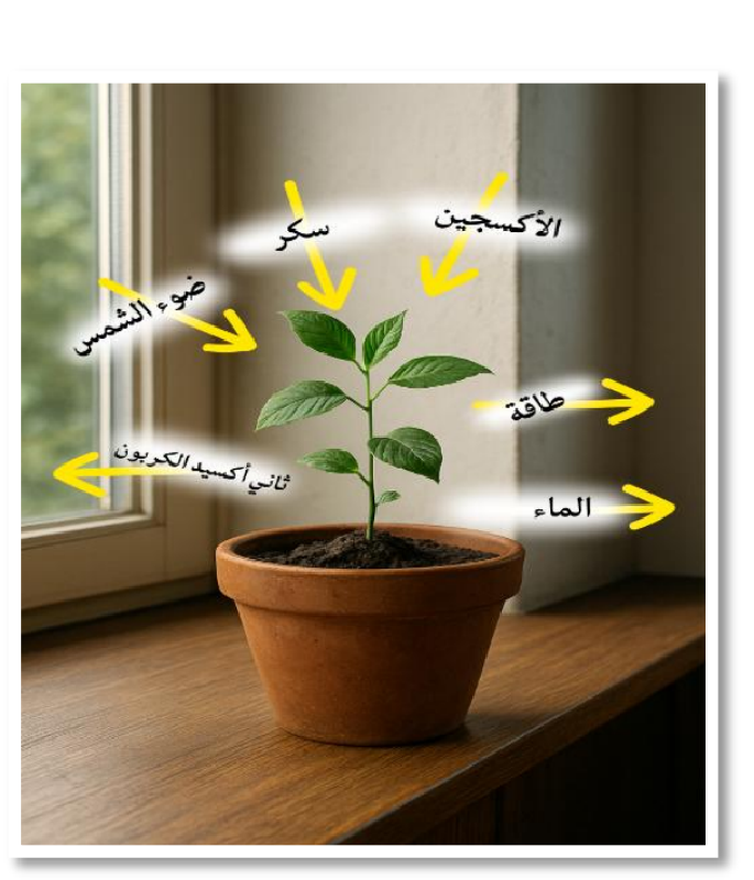 أمامك صورة لنبات يجري عملية التنفس الخلوي، التناقض الموجود في الصورة وجود: