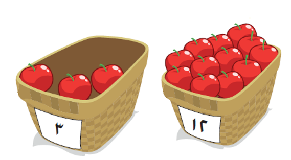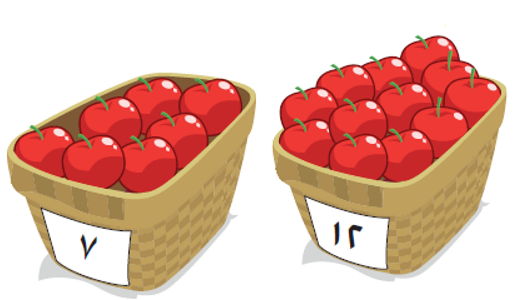 عند خالد ١٩ تفاحة في سلتين . حوط السلتين اللتين تحويان معاً ١٩ تفاحة .