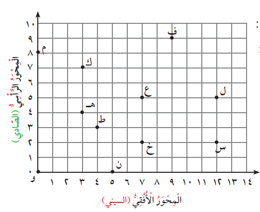 استخدم شبكة الإحداثيات وأجب عن الأسئلة اكتب الزوج المرتب الذي يمثل كل نقطة